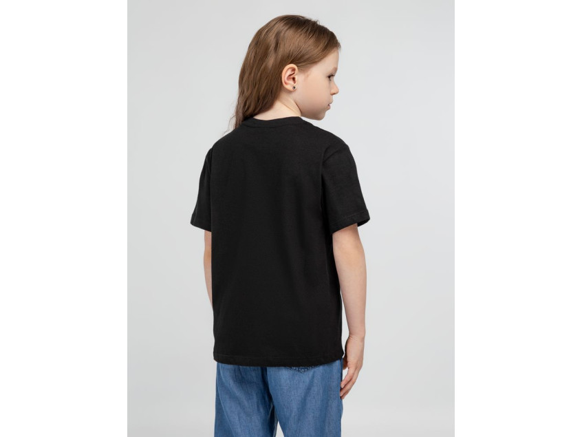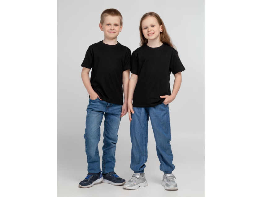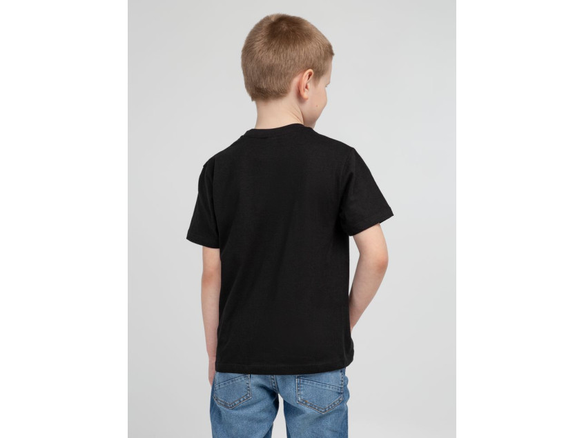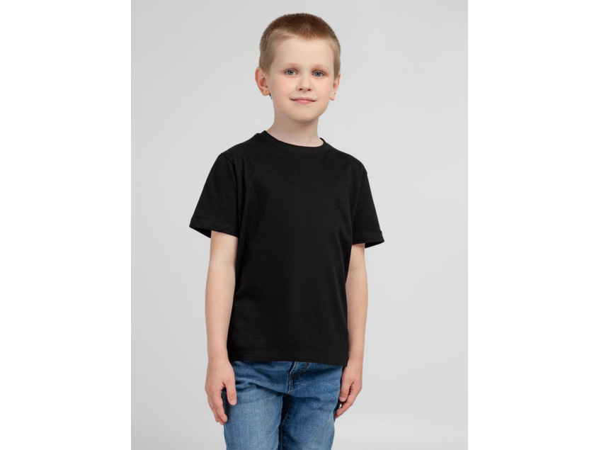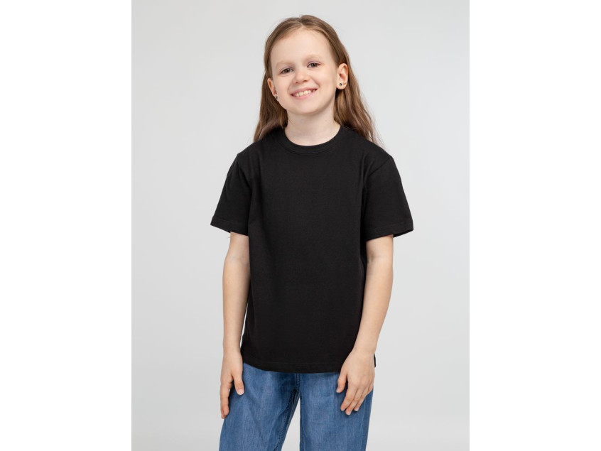 Классическая футболка с боковыми швами (4 года) или без боковых швов (с 6 лет), с укрепляющей тесьмой по вороту. Край ворота в резинку с эластаном. Двойная прострочка по низу, на рукавах и на вороте спереди.