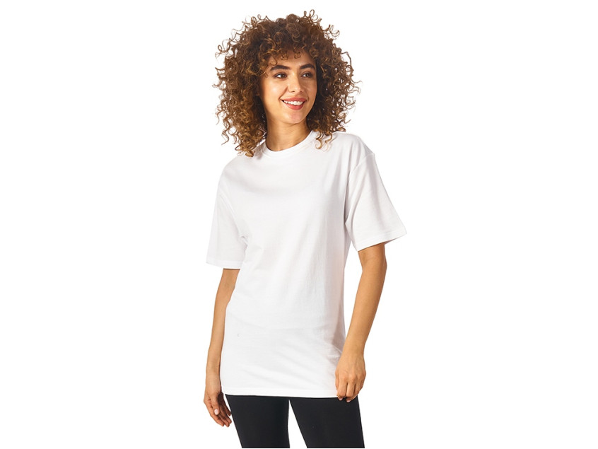 Футболка выполнена из хлопкового френч терри с петельками на изнаночной стороне. Горловина обработана рибом 2х2 и дополнительно усилена тесьмой-елочкой с внутренней стороны спинки. Гладкая поверхность полотна позволяет идеально нанести изображение. Футболка расслабленного силуэта для прогулок и других видов приятного времяпрепровождения