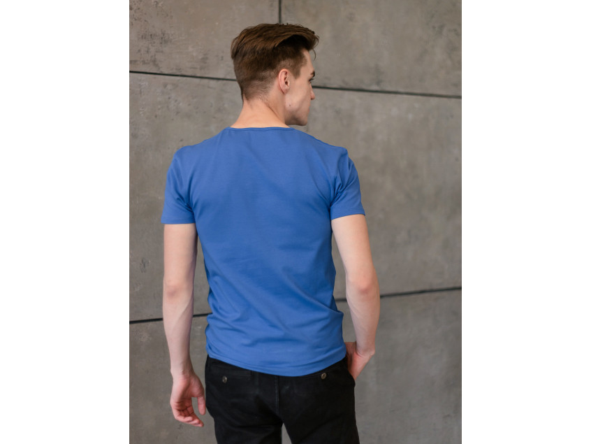 Мужская футболка облегающего силуэта с округлым вырезом и втачным рукавом.
