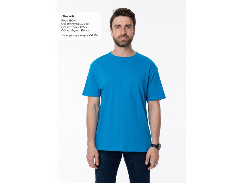 Размер мужской футболки: XXXL/56. Параметры модели: рост 190 см.; обхват груди 108 см.; обхват талии 87 см.; обхват бедер 104 см.