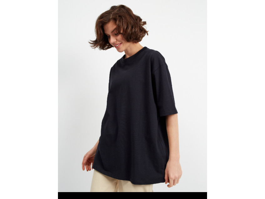 Универсальная футболка силуэта-оверсайз с округлым воротом и спущенной линией плеча.