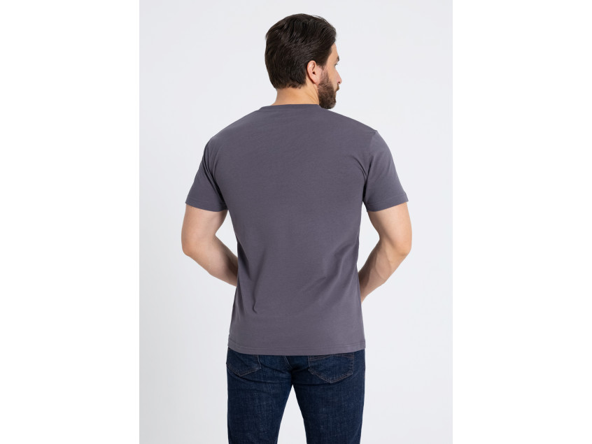 Мужская футболка прямого силуэта с округлым воротом и втачным рукавом.