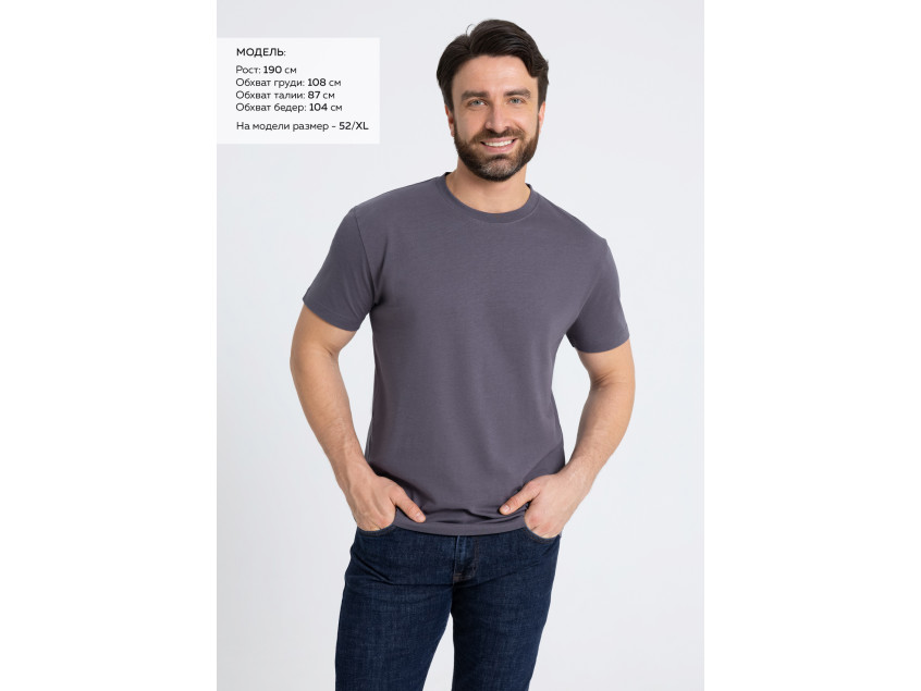 Размер мужской футболки: 52/XL. Параметры модели: рост 190 см.; обхват груди 108 см.; обхват талии 87 см.; обхват бедер 104 см.