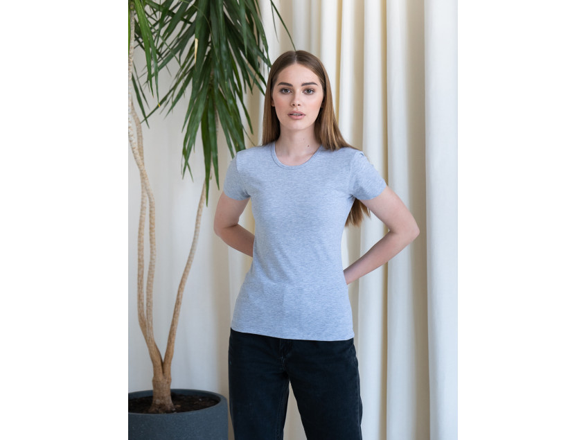 Женская футболка приталенного кроя с округлым врезом и втачным рукавом.