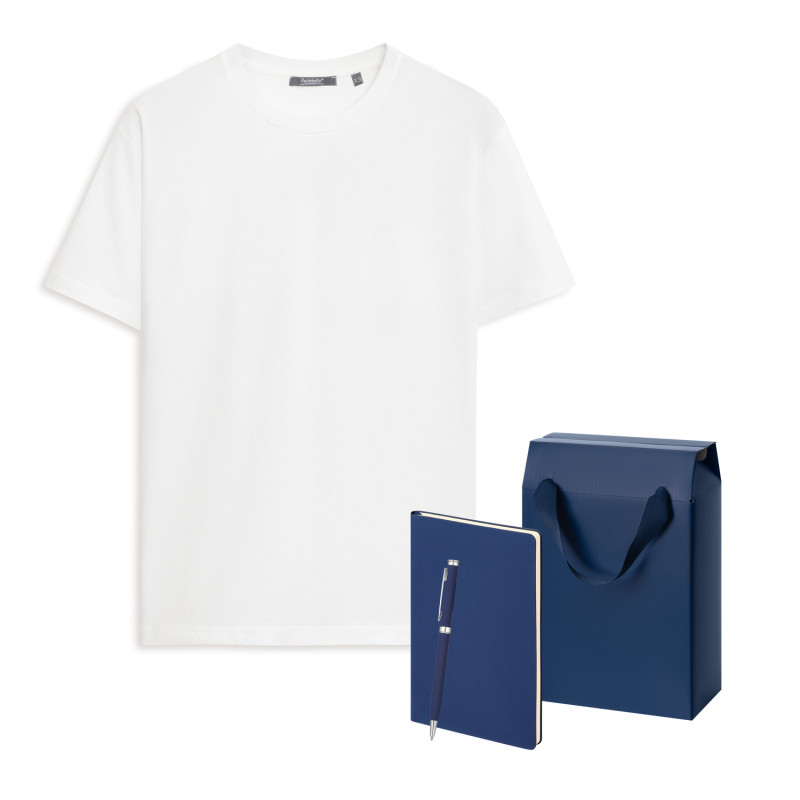 Набор с одеждой KRIS (футболка, ежедневник, ручка), белый/синий, M