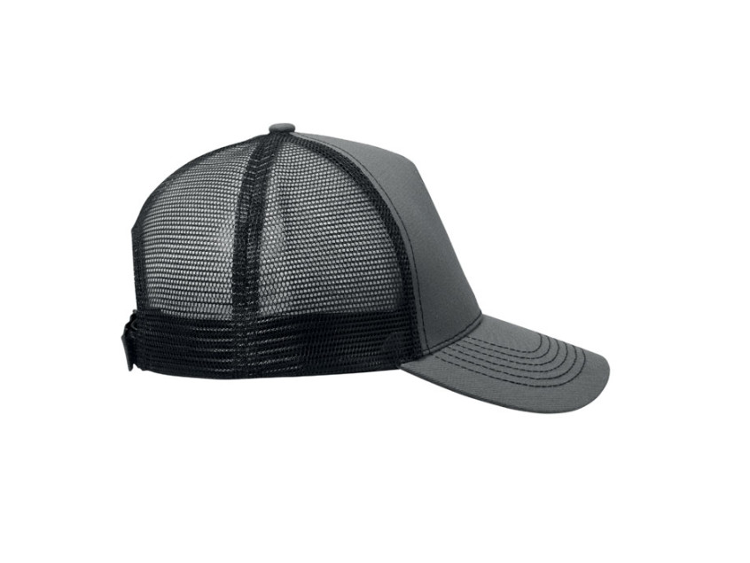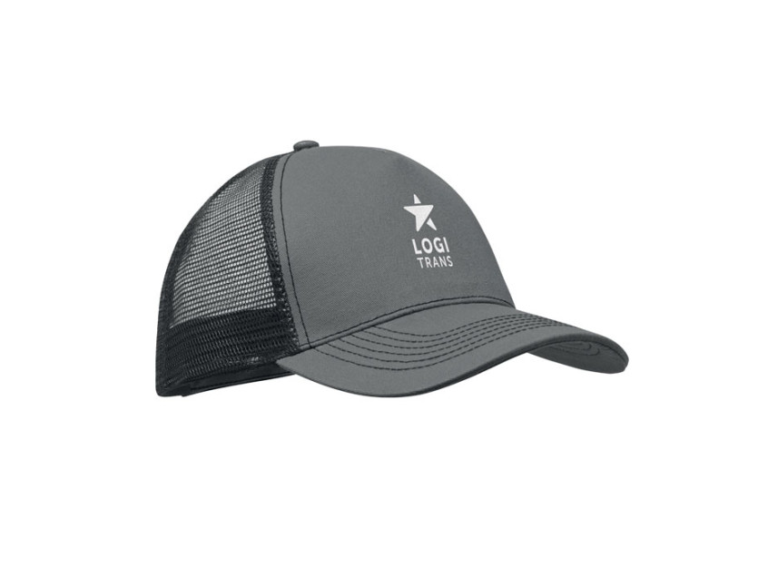 Бейсболка 5-клинка с передней панелью и козырьком из хлопка 250 г/м², задней сетчатой вставкой из полиэстера и застежкой на липучке.