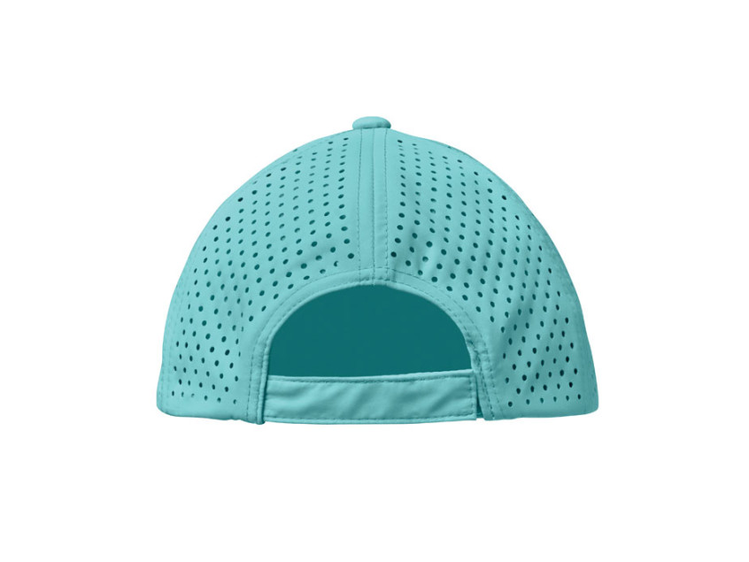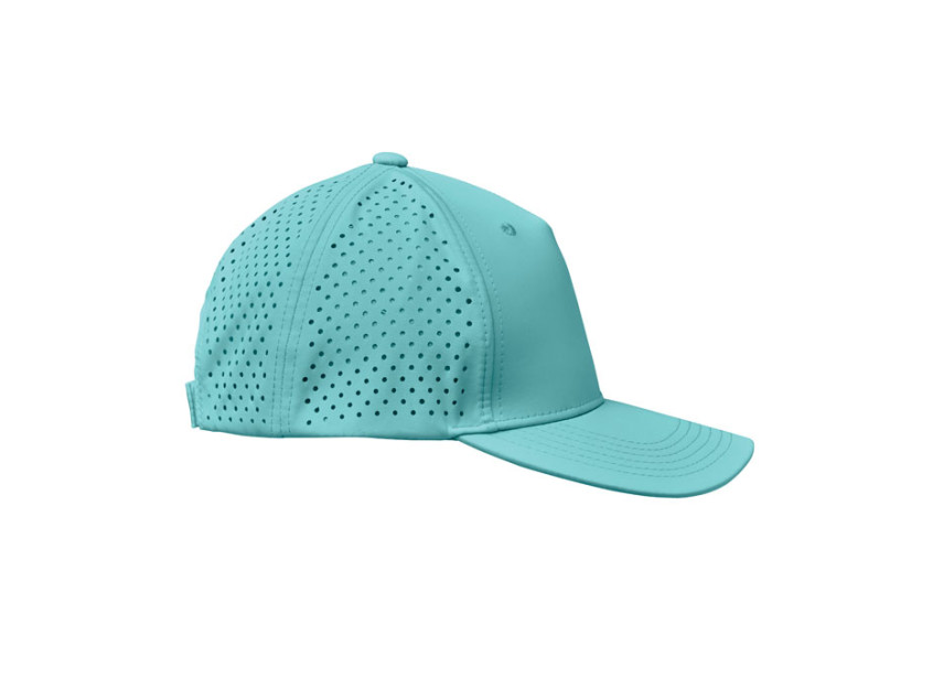 Бейсболка 5 клиньев из полиэстера с регулируемой застежкой и перфорацией. 2 люверса в цвет бейсболки. Быстро сохнущий материал с влагоотталкивающим эффектом. 130 гр/м²
