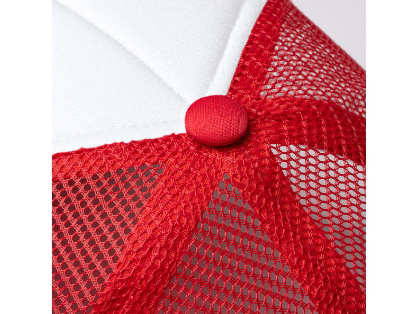 5-панельная кепка из полиэстера с мягкой лицевой панелью белого цвета. Сетчатая задняя часть и пластиковая регулируемая застежка.