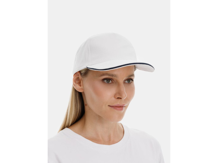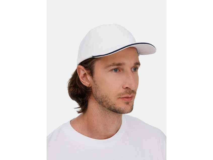 Бейсболка Classic 2.0, белая с темно-синим кантом