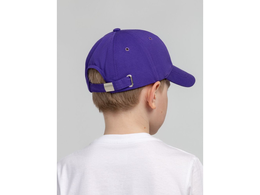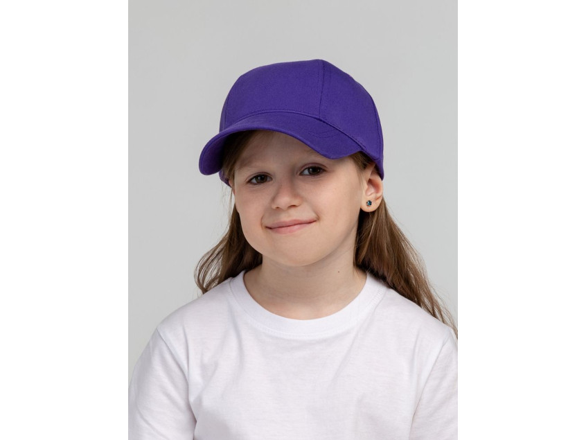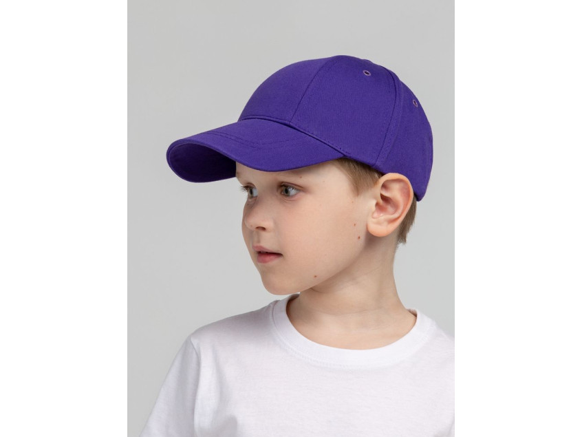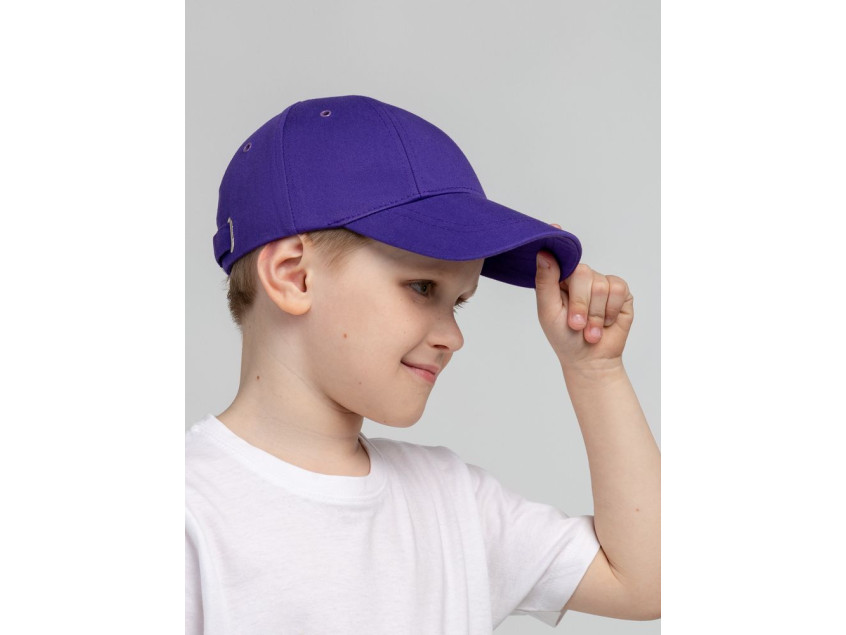 Детская модель с шестью клиньями без шва на лбу. Металлические люверсы покрашены в тон изделия. Сзади металлическая застежка для регулировки размера.
