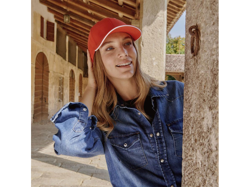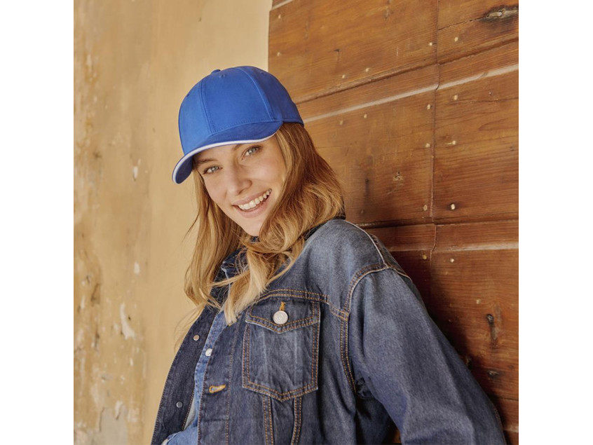 Бейсболка LIBERTY SANDWICH-S из смеси органического (80%) и переработанного (20%) хлопка - одно из лучших решений для промомероприятий и корпоративной формы:- 6 клиньев,- 6 вышитых люверсов для лучшей вентиляции,- изогнутый козырек «сэндвич» с декоративным кантом,- металлическая застежка.