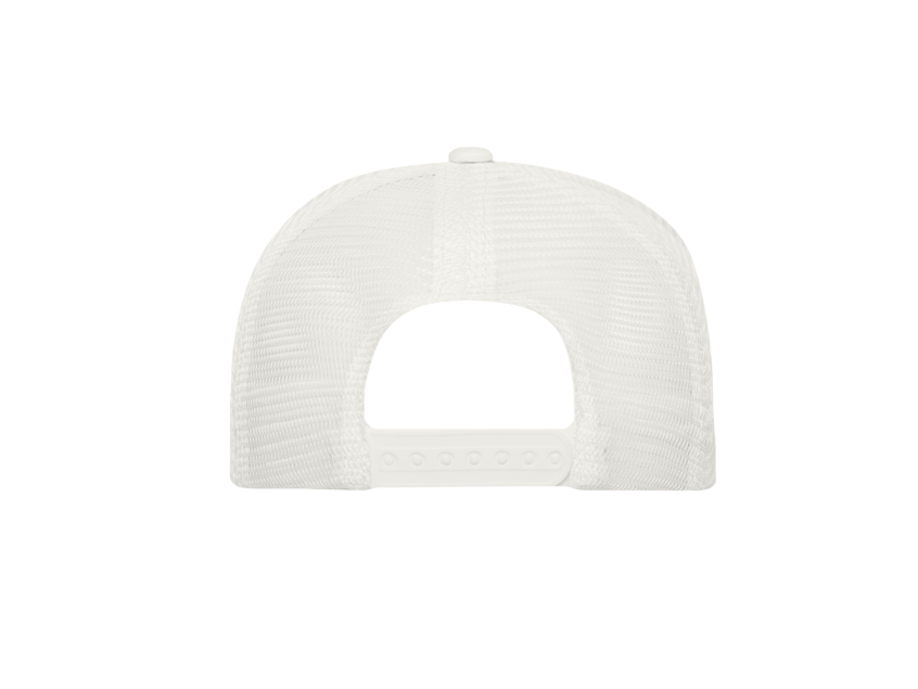 Бейсболка-пятиклинка с прямым жестким козырьком и пластиковой регулируемой застежкой, боковые клинья выполнены из жесткой сетки.