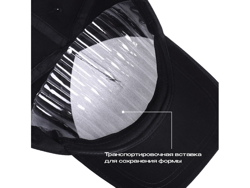 Для изготовления бейсболки использовали плотный хлопковый твил, благодаря которому изделие защитит от непогоды и надолго сохранит форму. Внутренняя обтачка из хлопчатобумажной ткани делает бейсболку комфортной для жаркой погоды.