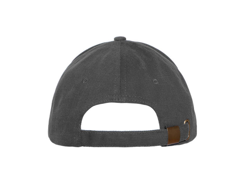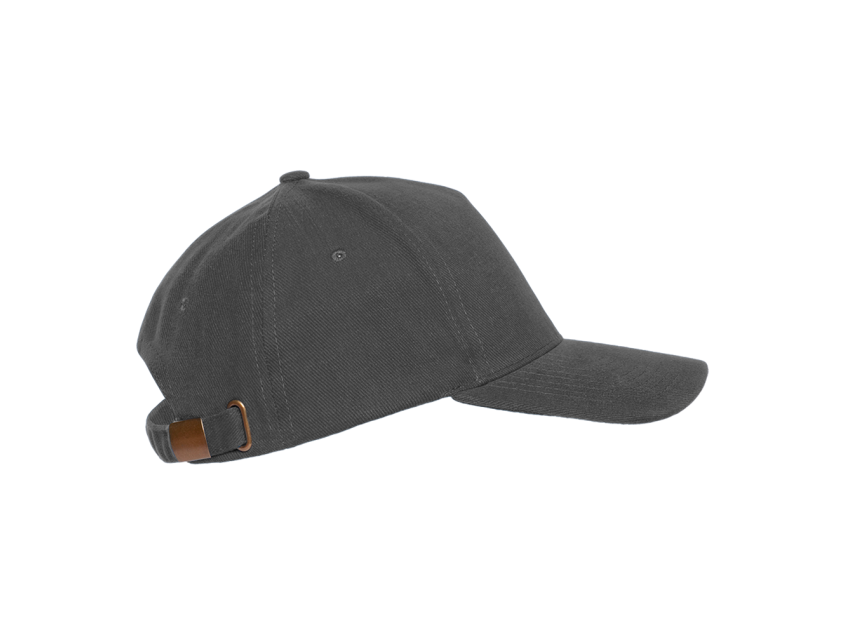 Бейсболка-пятиклинка без лобового шва с изогнутым жестким козырьком. Посадка регулируется ремешком на металлической застежке.