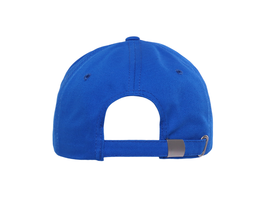 Бейсболка-шестиклинка с классическим изогнутым козырьком и застежкой на ленту с металлическим замком в тон основному цвету изделия.