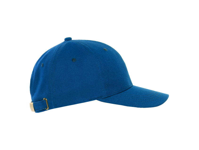 Бейсболка-шестиклинка с изогнутым жестким козырьком, прилегание регулируется ремешком с металлической застежкой.