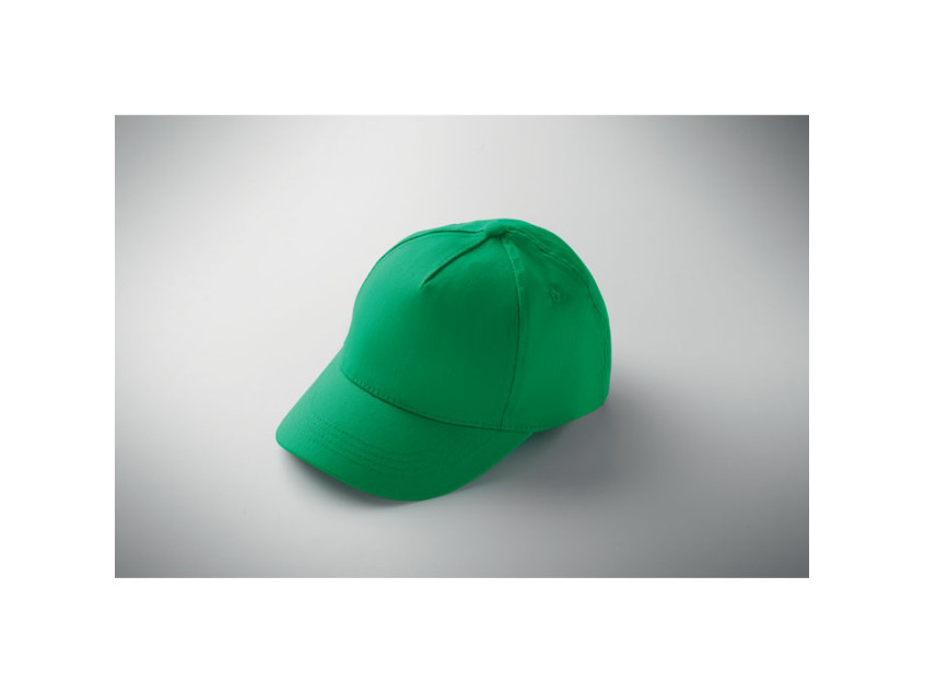 Детская бейсболка 5-клинка из хлопка 180 г/м² с регулируемой застежкой на липучке для удобной посадки.