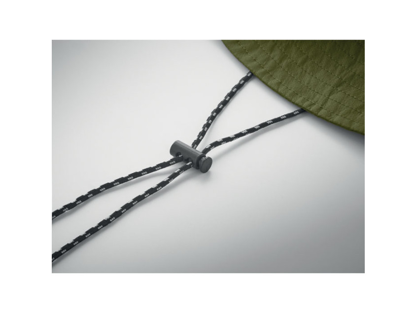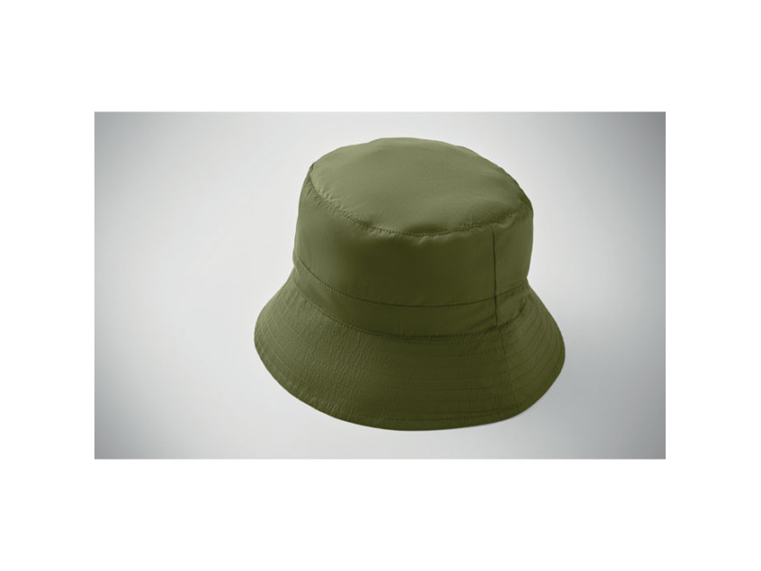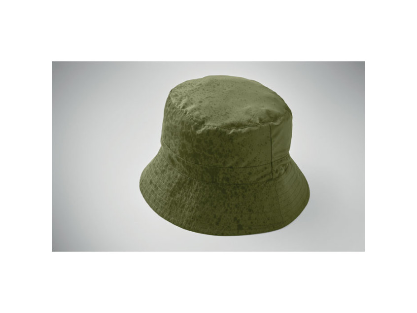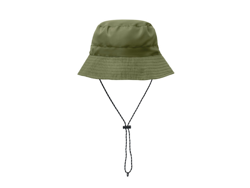 Шляпа рыбака из водоотталкивающего полиэстера, в комплекте чехол из того же материала с пластиковым карабином. 64 г/м².