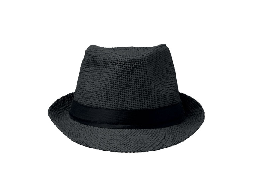 Шляпа из искусственной соломы с черной лентой из полиэстера. Для заказов без нанесения лента будет поставляться отдельно от изделия.