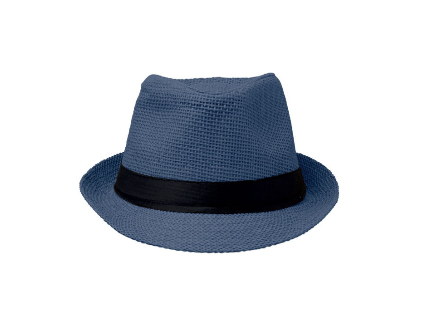 Шляпа из искусственной соломы с черной лентой из полиэстера. Для заказов без нанесения лента будет поставляться отдельно от изделия.