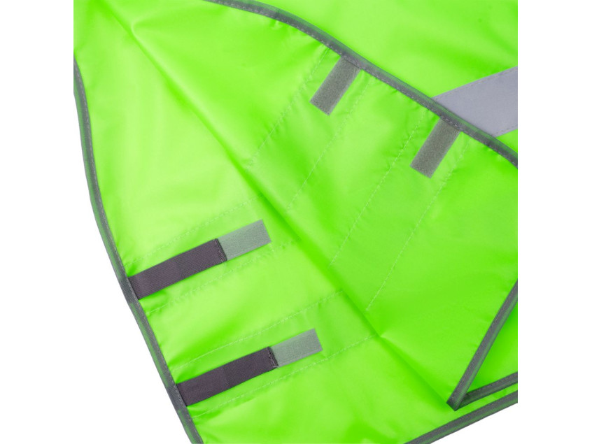 Детский светоотражающий жилет с застежкой-липучкой с одной стороны. Надевается через голову.