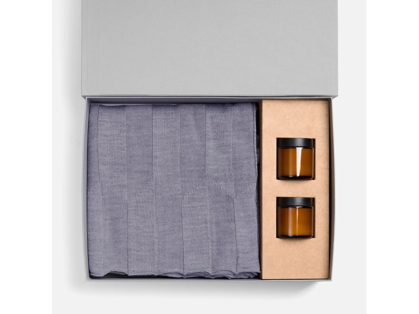 Материал: | плед - акрил 100%, плотность 286 г/м²; подсвечник - стекло, крышка - пластик; свеча - парафин, соевый воск, парфюмерная композиция; коробка - переплетный картон, бумага Malmero |