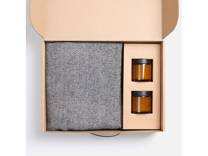 Мягкий плед с нежной бахромой станет идеальным спутником для расслабляющих вечеров и придаст стильный облик любому интерьеру. Две ароматические свечи в элегантных стеклянных баночках мягко наполнят пространство расслабляющим светом и тонким ароматом, добавляя нотки спокойствия и гармонии.