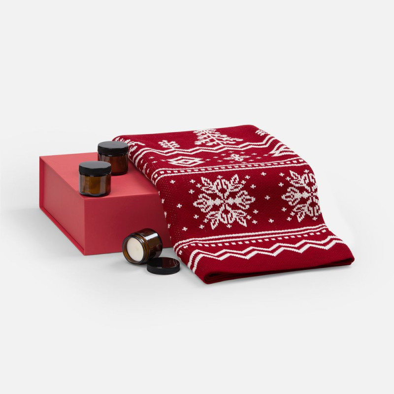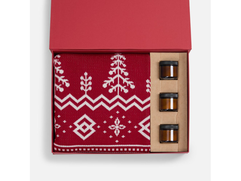 Идеальный зимний подарок для ваших партнёров и клиентов. Этот набор — дань уютным традициям и современному стилю. Мягкий плед с аутентичными зимними узорами и три изысканных аромасвечи дарят атмосферу тепла, праздника и беззаботности.