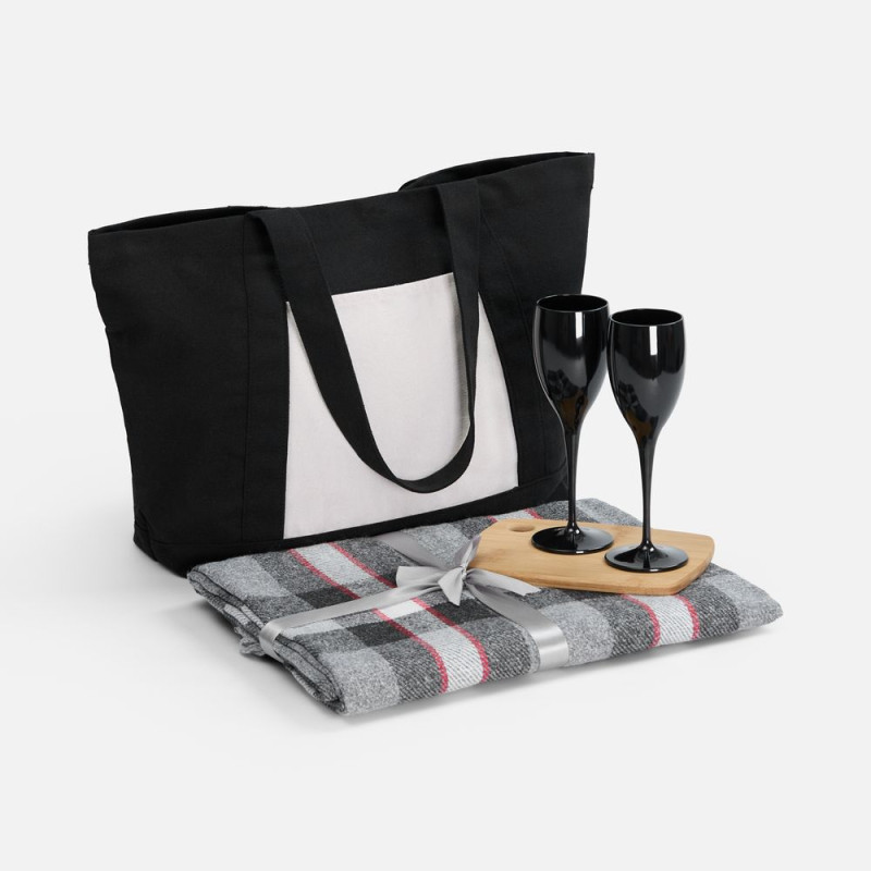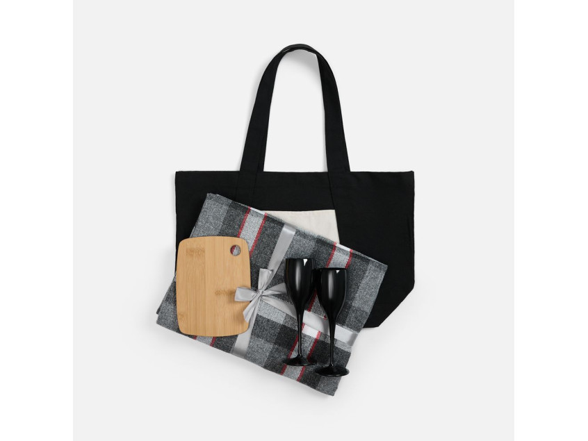 | Материал: | плед - шерсть 15%; хлопок 5%; полиэстер 60%; акрил 20%, плотность 200 г/м²; шопер - полиэстер 60%, переработанный хлопок 40%, плотность 340 г/м²; бокалы - пластик; доска - бамбук |