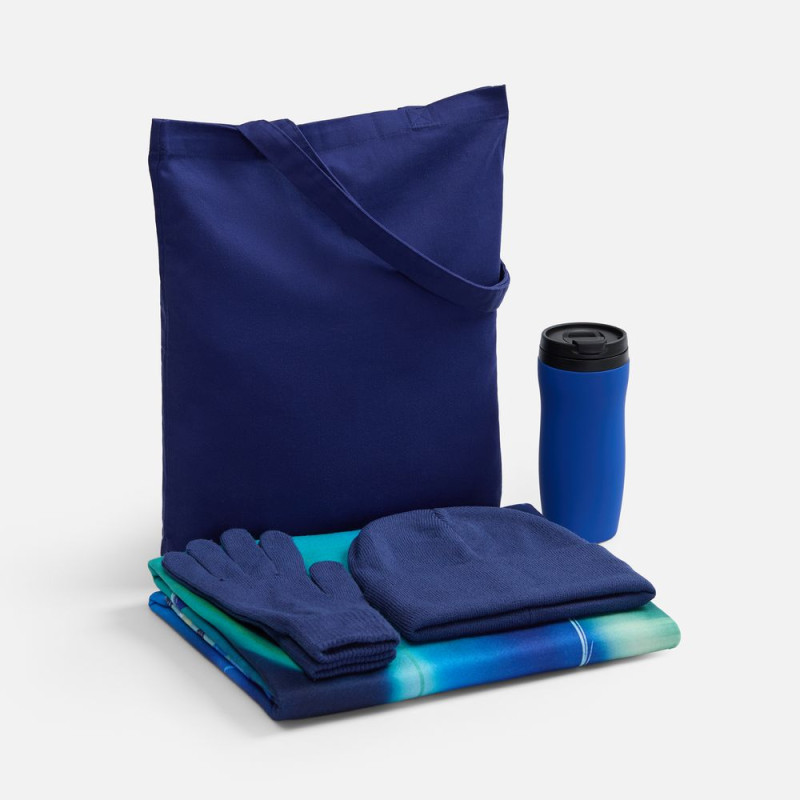 Набор «Ваше сиятельство» — это выражение заботы и нетривиальный комплимент в одном шопере! В нем тонко переплетены дух современного города и очарование северной сказки. Его элементы лаконичны и функциональны, а главная изюминка — живописный плед с изображением северного сияния — добавляет ноту настоящего чуда.