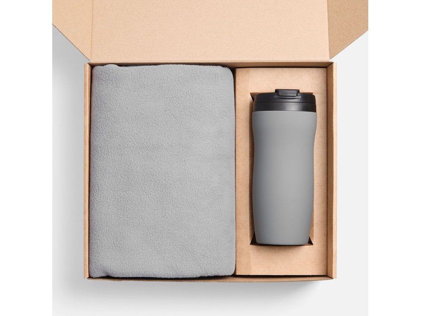 Материал: | крышка, внутренняя колба - пластик; корпус - нержавеющая сталь; покрытие софт-тач; плед - флис, плотность 180 г/м²; коробка - микрогофрокартон, Т-23Е |