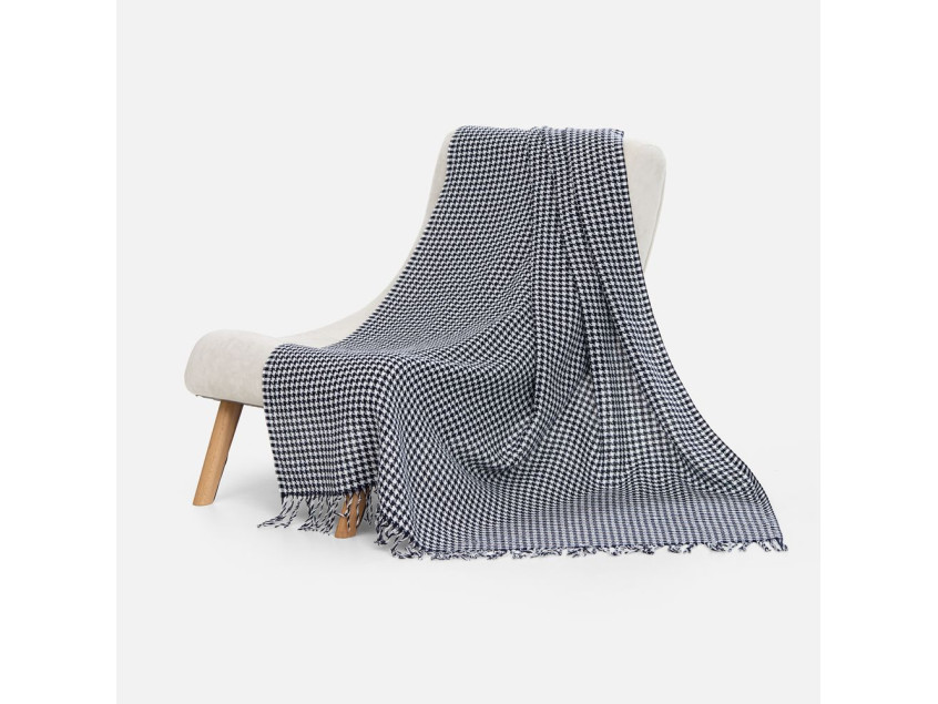 Графичный узор «гусиная лапка» (или «pied-de-poule») превращает изделие в изысканный интерьерный акцент, а бахрома добавляет ему элегантности и завершенности. Это воплощение безупречного вкуса и дань вневременной классике.