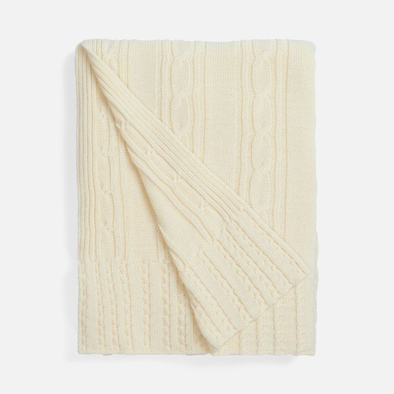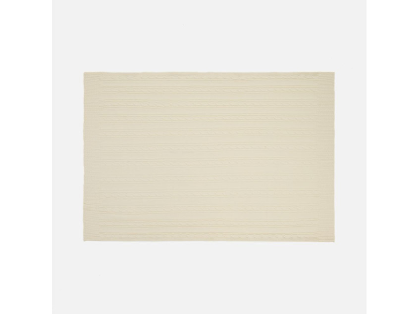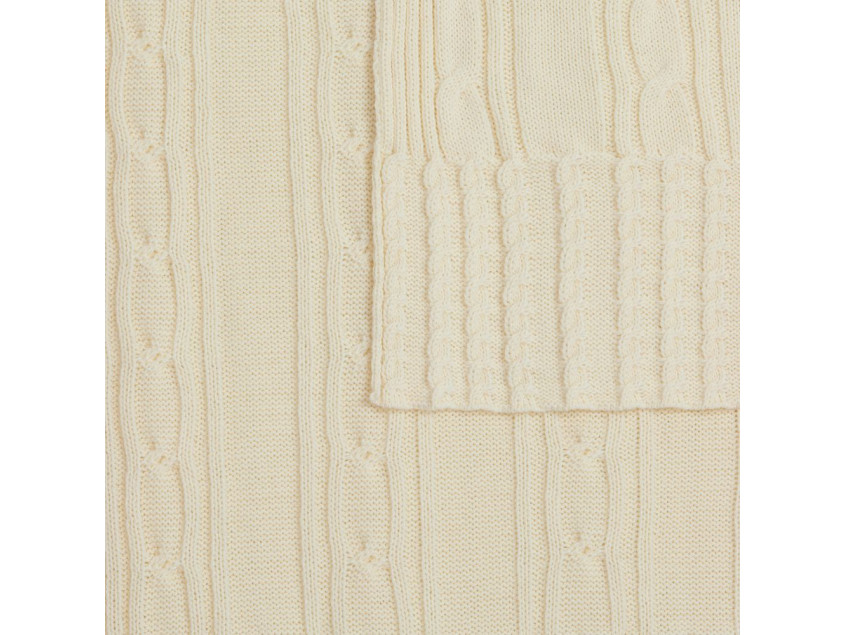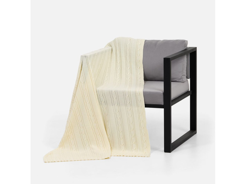 Тонкое переплетение вертикальных кос-жгутов создает благородную фактуру, где простота линий встречается с изысканной текстурой. Плед из мягкого акрила сохраняет тепло, оставаясь удивительно легким и воздушным.