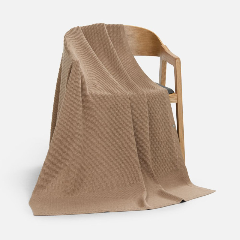 Плед Voyage соткан из мягкого сочетания шерсти и акрила — нежный, теплый и невесомый, он словно создан для уютных вечеров. Кнопка позволяет превратить плед в элегантную накидку, когда воздух становится прохладнее.