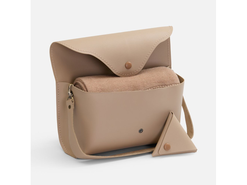 Плед поставляется в стильном кофре с аккуратным кошелечком на кнопке — продуманная деталь для удобного хранения и бережной транспортировки. Такой плед легко взять с собой в путешествие, он станет вашим любимым спутником в прохладное время года.