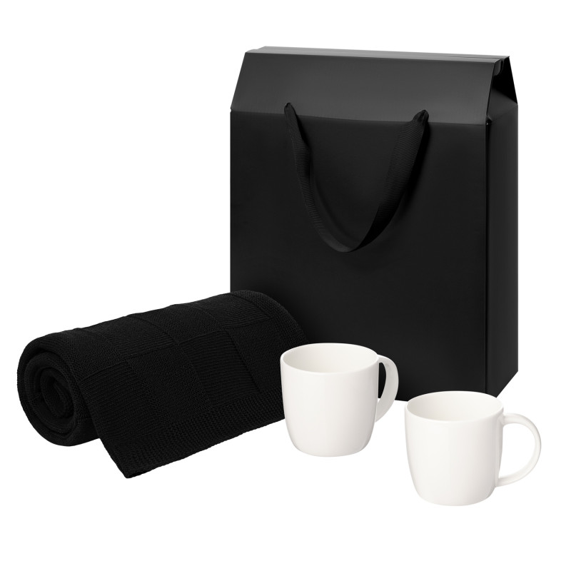 Подарочный набор Dafna, Cella, черный в коробке-пакете (две фарфоровых кружки, плед)