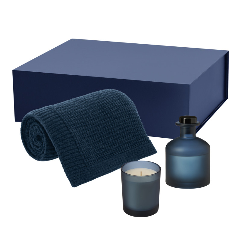 Подарочный набор Enigma, Malta Soft, синий (свеча, диффузор, плед)