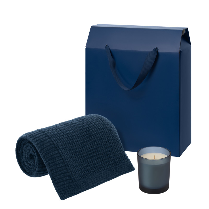 Подарочный набор Enigma. Malta Soft, синий (свеча, плед)