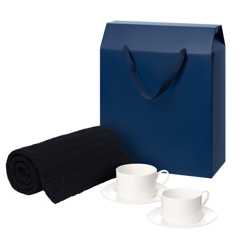 Подарочный набор Mokko, Fado, темно-синий в коробке-пакете (две чайных пары, плед)