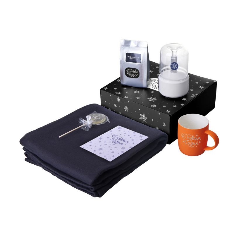 Материал:плед - флис 100% полиэстер; увлажнитель-аромадиффузор - АБС пластик, поликарбонат; кружка - костяной фарфор с покрытием soft-touch; открытка - бумага; мешок - нетканый материал (спанбонд)