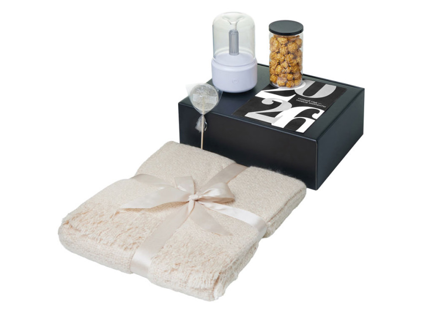 Новый год — новые моменты, которые хочется прожить по-настоящему. Вспомните детство, когда мы никуда не спешили, наслаждались каждым мгновением и делали то, что нам нравилось. Наборы серии Re: напоминают: важнее всего человек, а не его роль. Они дарят возможность замедлиться, отложить гаджеты и насладиться настоящим. Пусть новогоднее время станет паузой, наполненной тишиной, теплом и моментами, которые восстанавливают перед новым годом. Каждый набор — как мини-ритуал: согреться, замедлиться, почувствовать себя, поблагодарить и восстановиться после года, полного скорости, дедлайнов и шума. Это не о деловом спасибо — это о настоящем внимании. Это о том, чтобы сказать: Я вижу, сколько ты сделал. А теперь — время для тебя. Re:Snug — о мягком уюте и спокойных вечерах. Укутайтесь в плед, включите увлажнитель, чтобы воздух был свежим и мягким, и устройтесь в своём маленьком уголке комфорта. Попкорн и леденец — маленькое сладкое дополнение, которое создаёт настроение уюта. Этот набор превращает каждый вечер в момент, который принадлежит только вам.