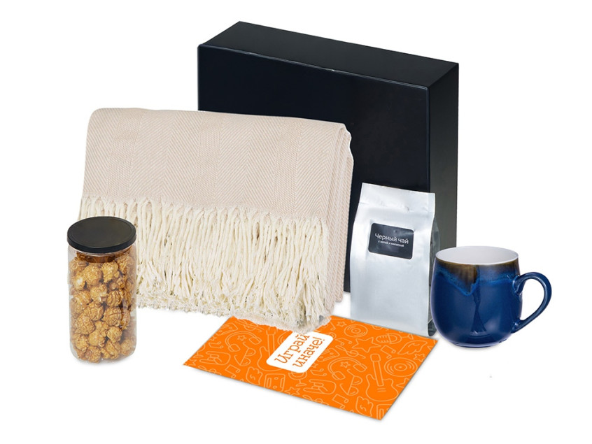 | Материал: | плед - 100% хлопок, кружка - костяной фарфор с покрытием soft-touch,чай - пластик, попкорн - пластик, металл, мешок - нетканый материал (спандонд), коробка - картон |
