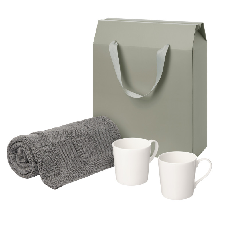 Подарочный набор Siena, Cella, серый в коробке-пакете (две фарфоровых кружки, плед)