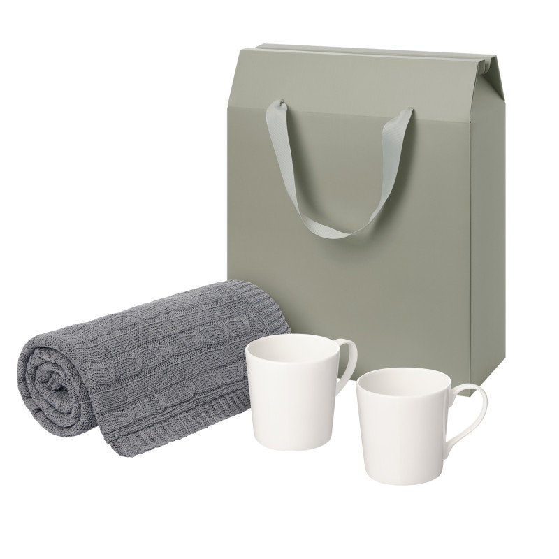 Подарочный набор Siena, Fado, серый в коробке-пакете (две фарфоровых кружки, плед)