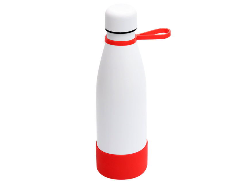 Вакуумная термобутылка Olivia, белый - артикул 5050.01, кольцо-держатель - красный; манжета - красный