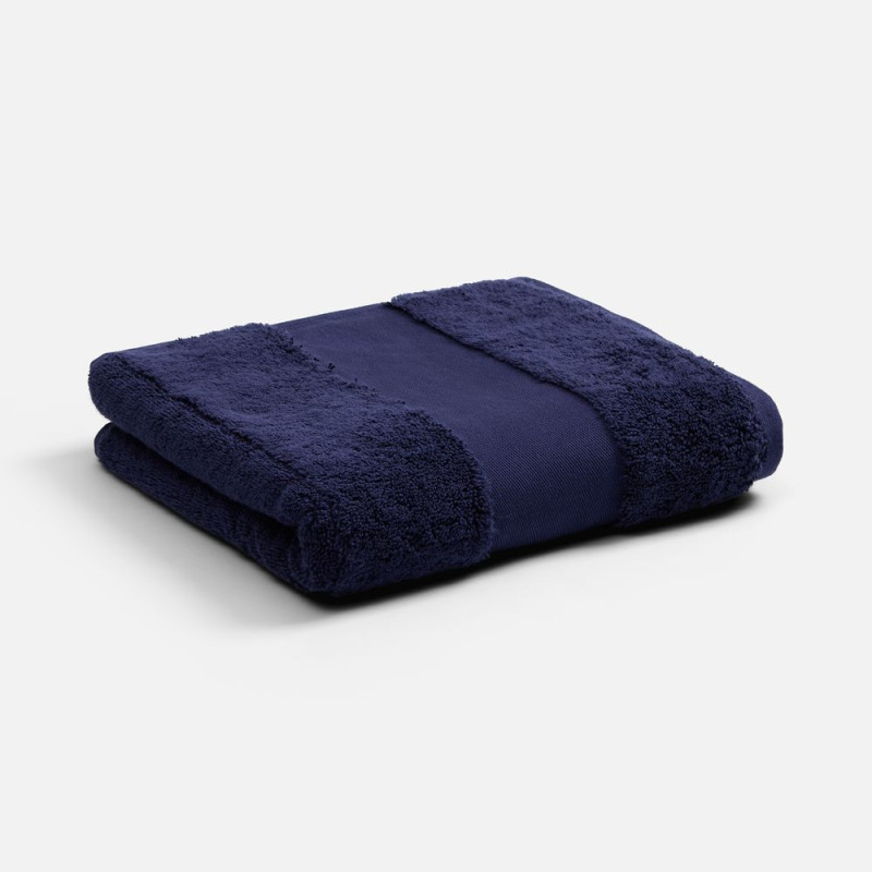 Разноуровневая махровая ткань создает объем и обеспечивает мгновенное впитывание и деликатный массажный эффект, а широкий хлопковый бордюр открывает возможности для особенной персонализации.