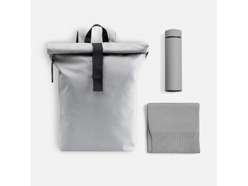 Составляющие набора — шарф и термос — помогут оставаться стильным и, что немаловажно, довольным даже в холодное время года. Модный и практичный рюкзак с удобной регулировкой объема роллтоп всегда подстроится под ситуацию, а потому станет просто незаменим как ежедневно в городе, так и в путешествии.