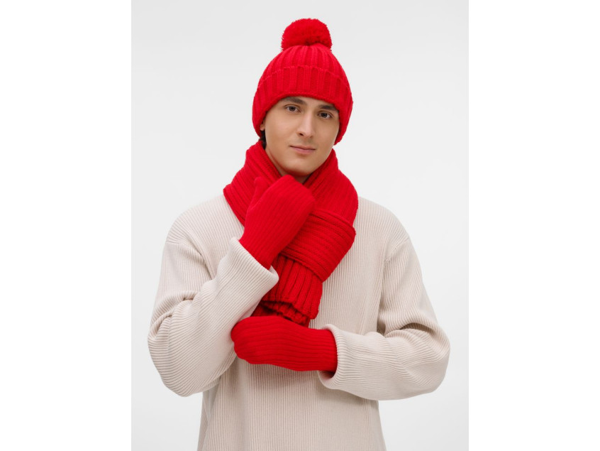 Яркий комплект из шапки, шарфа и варежек создан для тех, кто любит проводить зиму активно и с удовольствием.