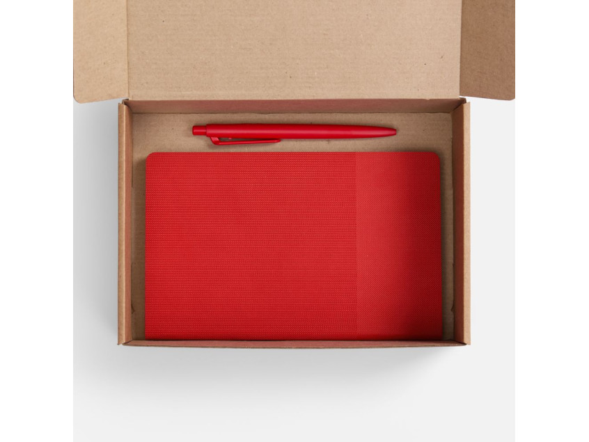 Ежедневник с гибкой обложкой, выполнен из материала Canyon, красный РР, дополнен ляссе в цвет обложк..