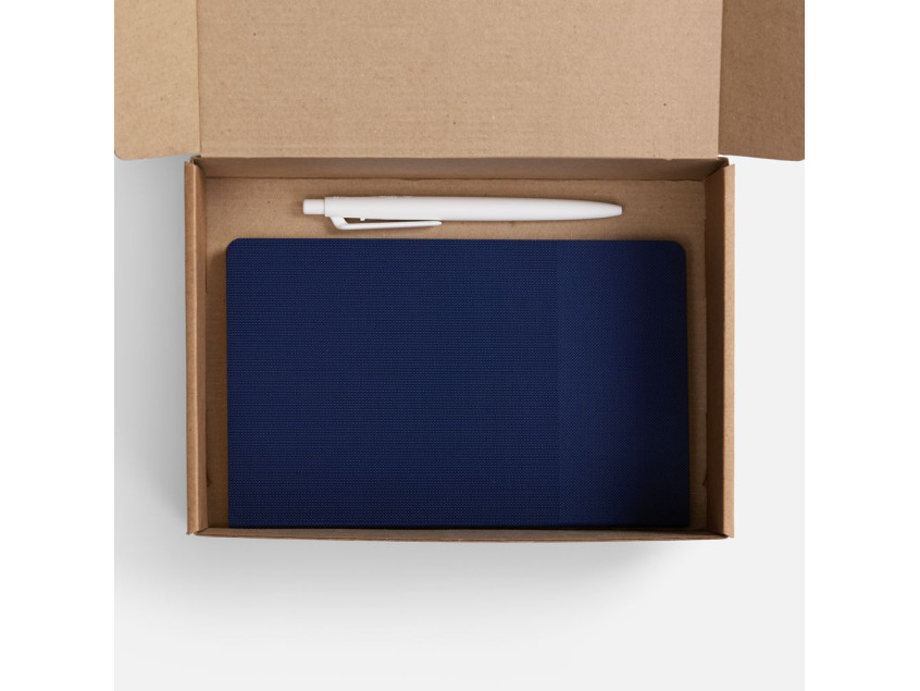 Ежедневник с гибкой обложкой, выполнен из материала Canyon, темно-синий ХХ, дополнен ляссе в цвет об..